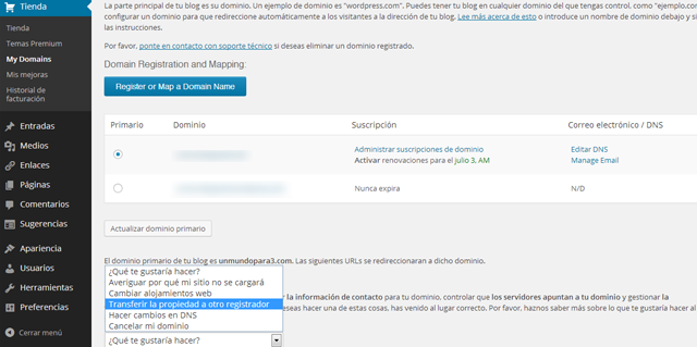 El traslado del dominio que hayamos podido comprar en WordPress.com es el primer paso para para migrar un blog de WordPress.com a una instalación de WordPress alojada en nuestro propio servidor. Hace tiempo que tengo en mente crear esta guía paso a paso y esta es la primera de las entregas en las que dividiré el proceso.
